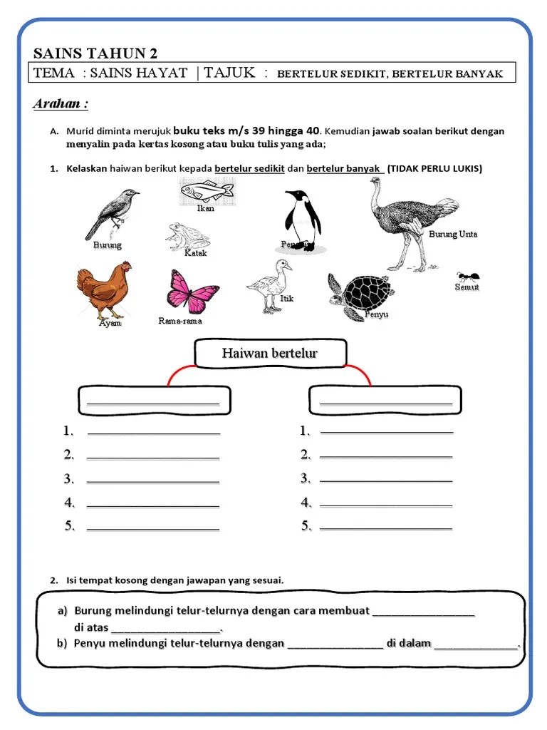 Kamis, 20 mei 2021 tambah komentar edit . Ejercicio de sains tahun 2. Dunia haiwan( sains tahun 2 ): Antara haiwan berikut, yang manakah membiak dengan cara bertelur ? Latihan/kuiz jenis pembiakan haiwan tahun2. Cara haiwan membiak, haiwan bertelur . M.khalimi dalhanpenerangan berkenaan terdapat haiwan yang beranak sedikit dan haiwan beranak banyak . Lembaran kerja latihan sains tahun 2 haiwan ~ memang . Check pages 101 118 of modul pengajaran sains tahun 2 versi bm in the flip pdf version. Unit 4 haiwan (bertelur sedikit atau banyak dan beranak.